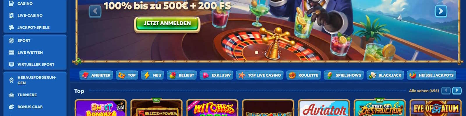 Bonusguthaben bis zu 500 € + 200 FS